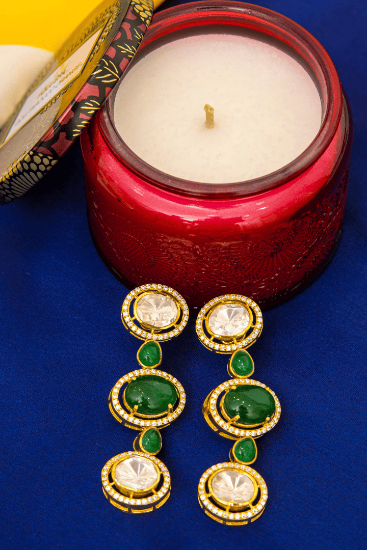 Step into the world of elevated elegance with the Aurelia Kundan Empress Drops. Crafted on a foundation of hallmarked 92.5 silver, these earrings promise durability, brilliance, and an heirloom-worthy finish. The intricate detailing reflects exceptional craftsmanship, making this piece not just jewelry—but a statement of taste, luxury, and culture . Aurelia is where artistry meets royalty.
