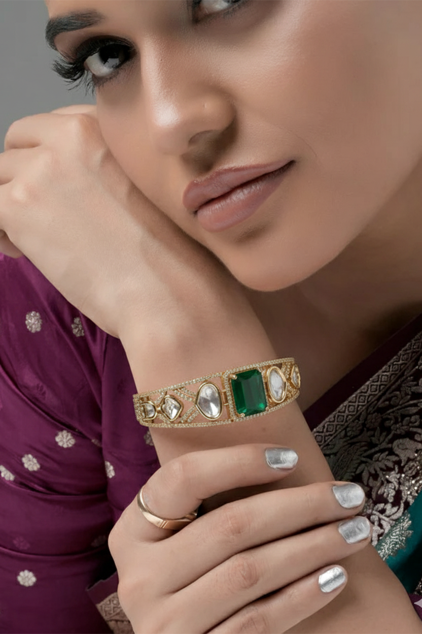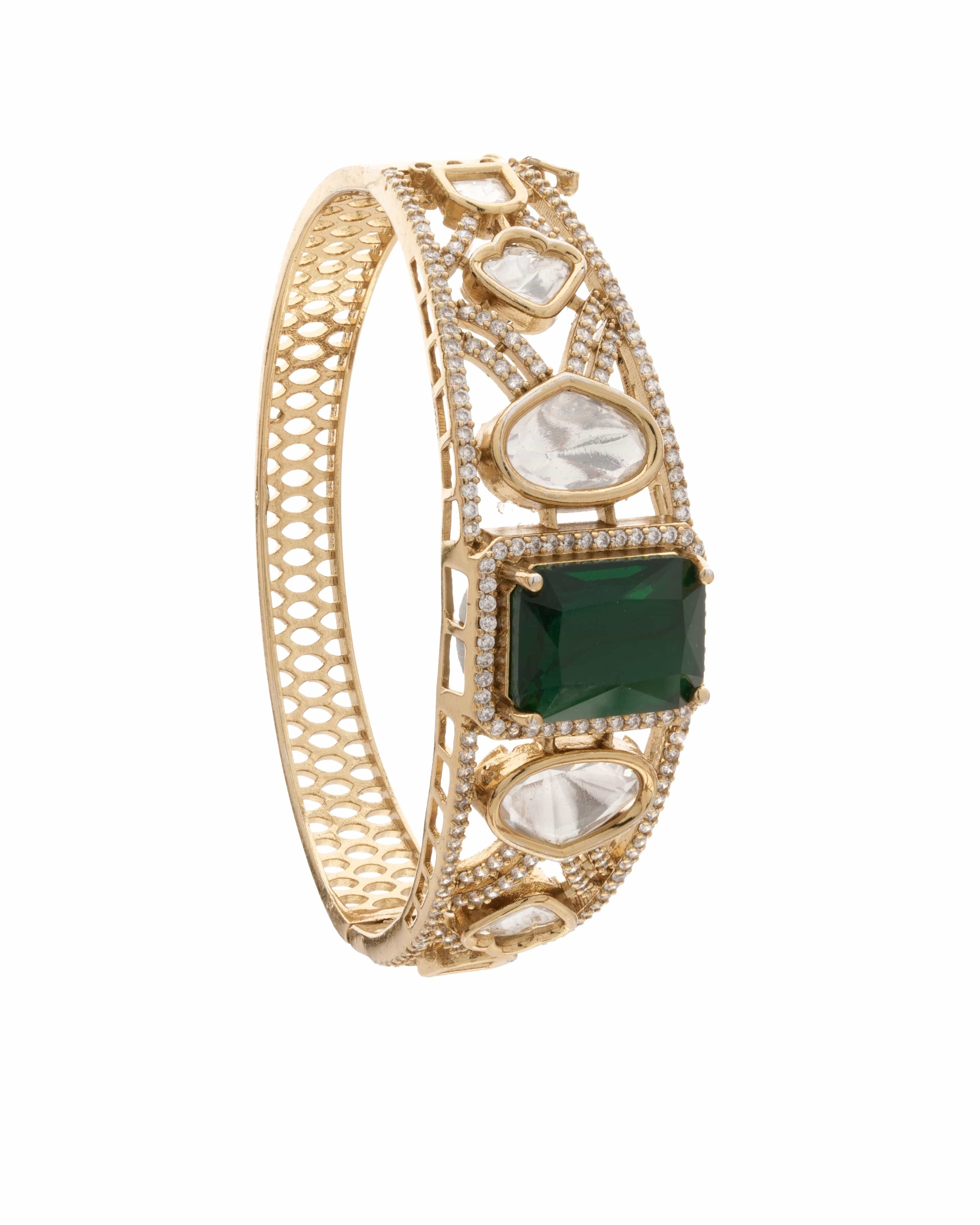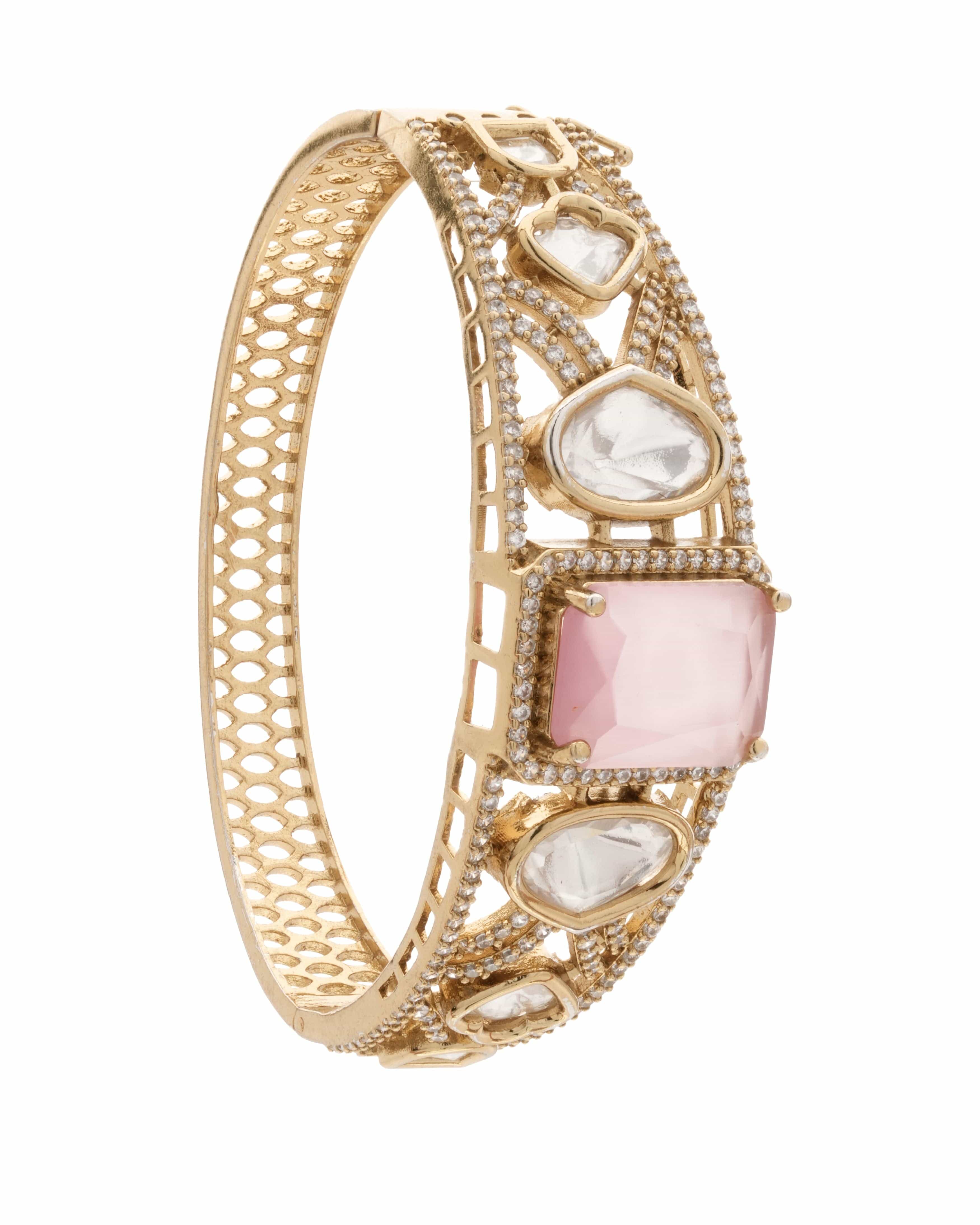 Elevate any ensemble with the Crimson Radiance Gold color Openable Bracelet. Polished gold-tone metal meets a bold, square-cut red crystal centerpiece, framed by a geometric open-work design and sparkling clear accents. Perfectly sculpted for a comfortable fit, this statement bangle adds a pop of color and glamour—whether you’re dressing up for date night or layering for everyday sparkle.