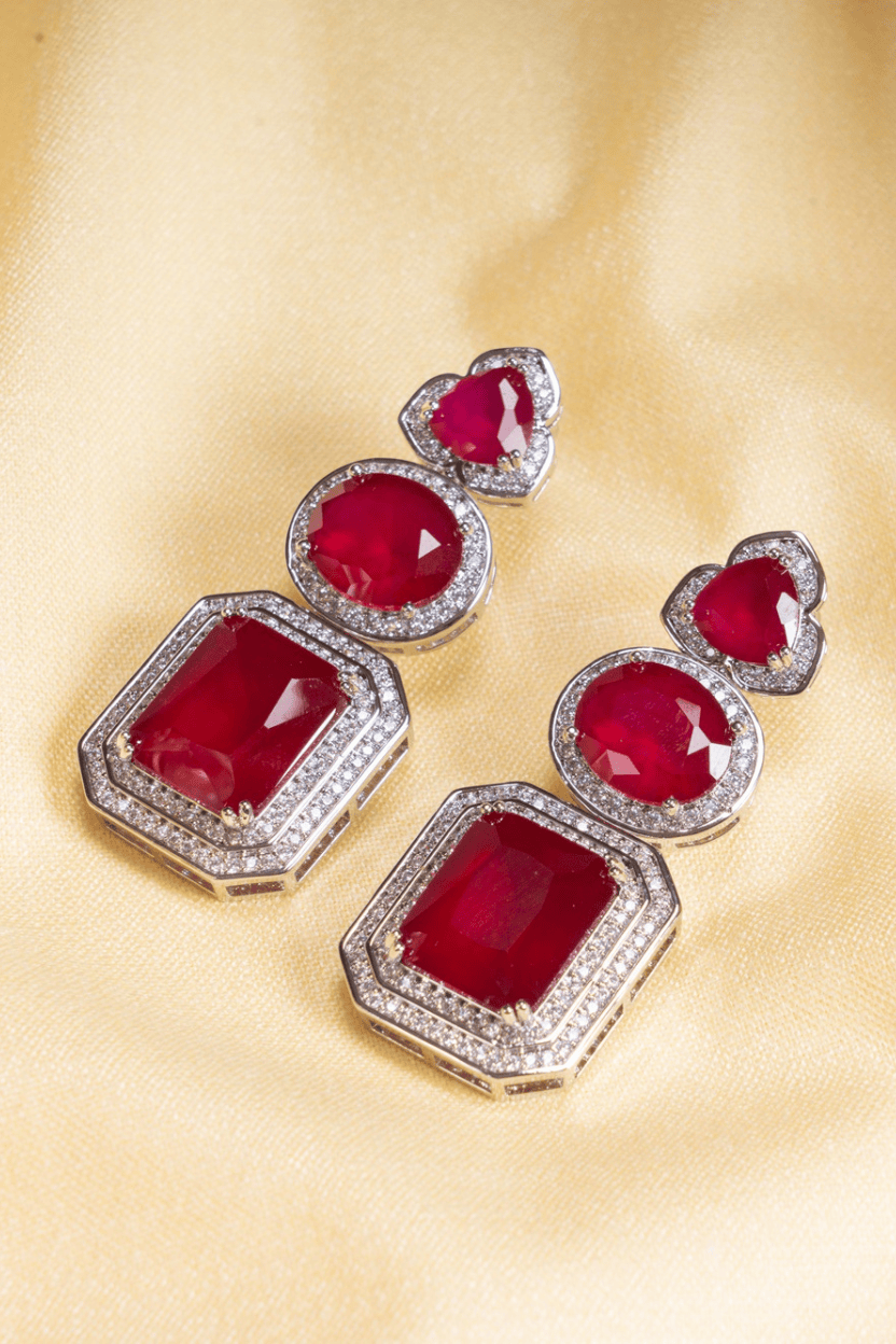 Step into sophistication with these striking emerald-tone statement earrings, designed for women who love a refined yet bold look. With a contemporary three-stone vertical drop — a teardrop, oval, and an emerald-cut square centerpiece — this pair combines modern luxury with timeless elegance.