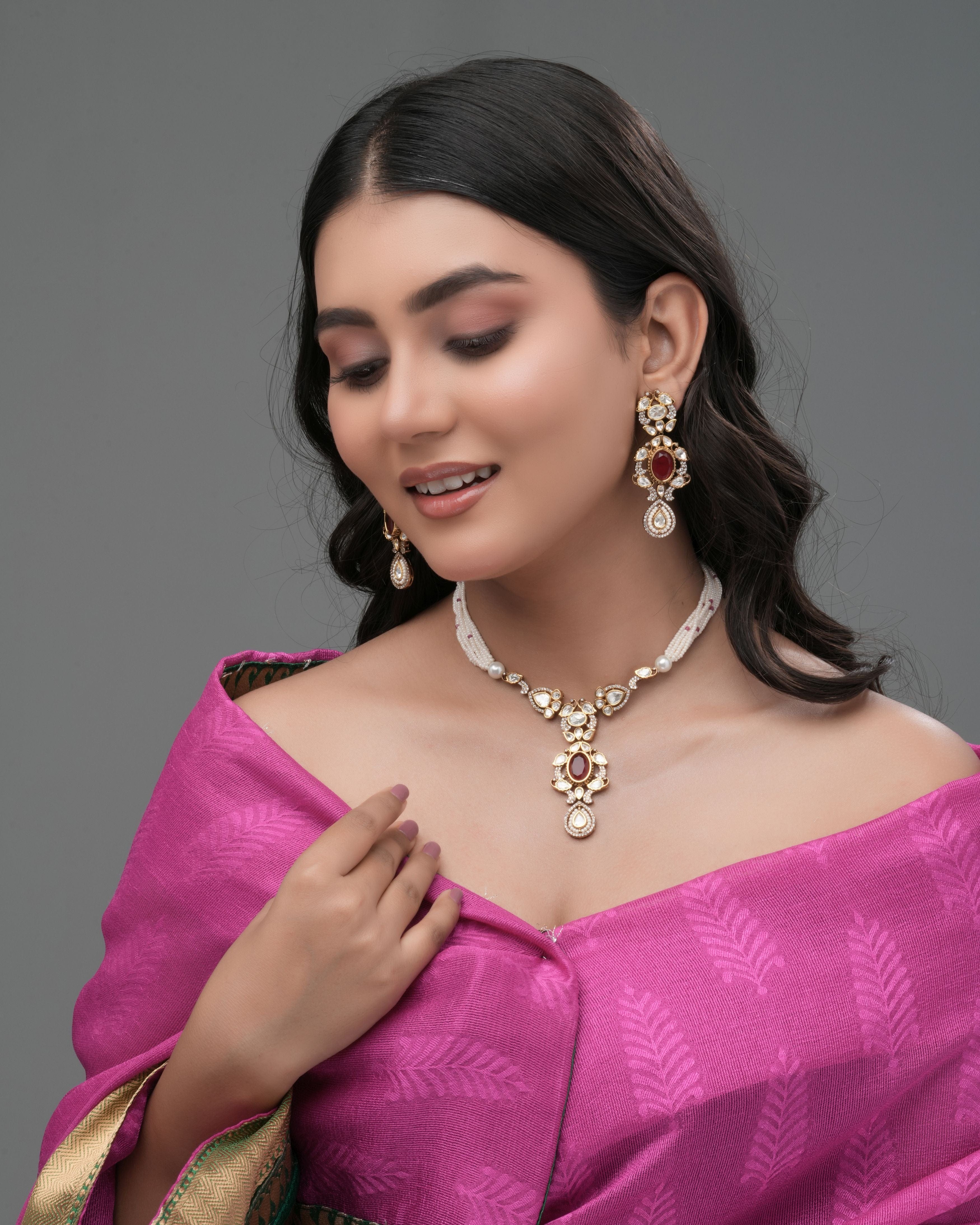 Earring Style: Matching beautiful earrings which echo the necklace/ Rubber Washer to hold the earrings to give a perfect look