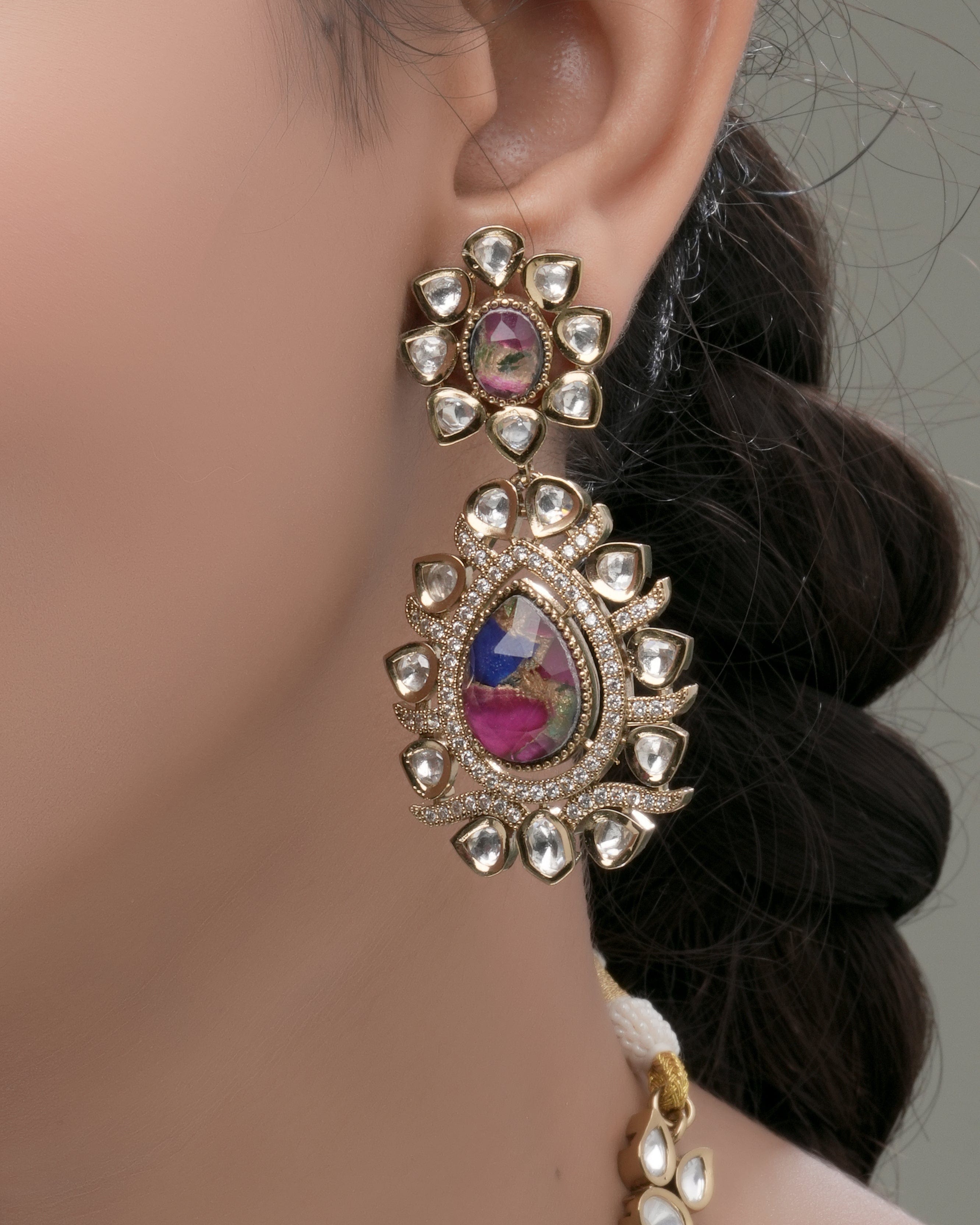 Earring Style: Matching beautiful earrings echo the teardrop mosaic motif/ Rubber Washer to hold the earrings to give a perfect look
