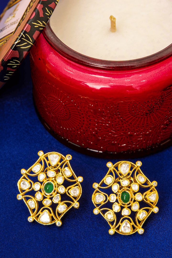 These magnificent stud earrings offer a perfect balance of contemporary geometry and classic heritage styling. The intricate mandala-inspired cluster pattern and exceptional craftsmanship make these earrings a sophisticated statement piece that can be worn seamlessly from day to evening.