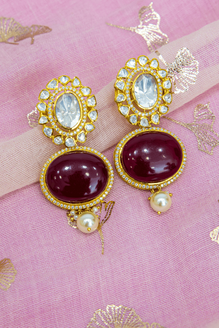 • Top Stud: Features a cluster of clear, flat-cut white stones in a traditional Polki-style setting, providing exceptional, organic sparkle.